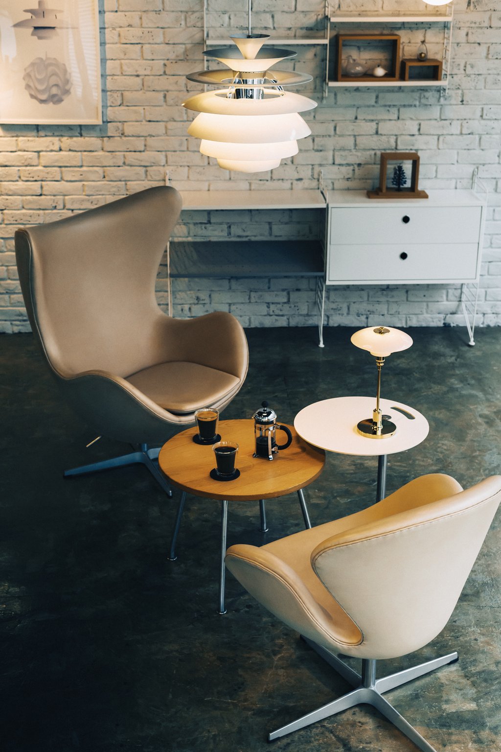 ※ソファー席、カールハンセンのチェアのテーブル席、屋外にテラス席がございます。(屋内は禁煙席、テラス席は喫煙可)