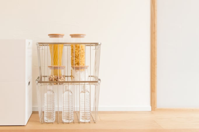 【Basket】ステンレス H25cm × W26cm × D38cm ¥2,750 ※スタッキング可能