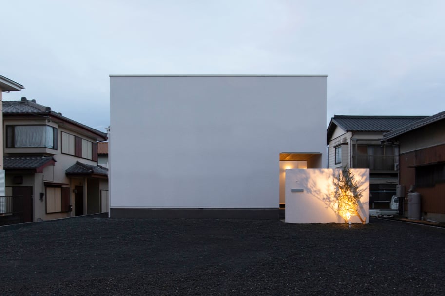 美術館のような夕暮れの景観