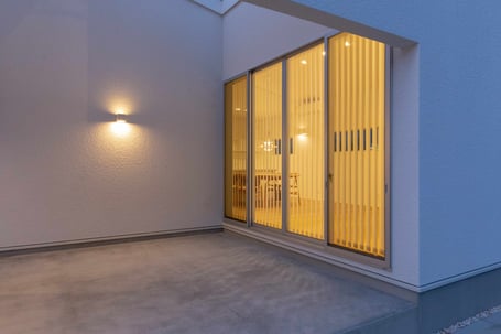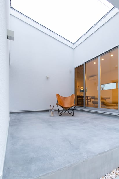 8帖の中庭テラスが隣接する玄関アプローチ