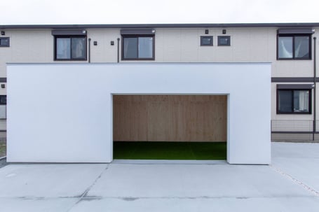 箱倉庫のサイズは10帖。バリエーションは「白」。パーソナルトレーニングジムのため床は人工芝。