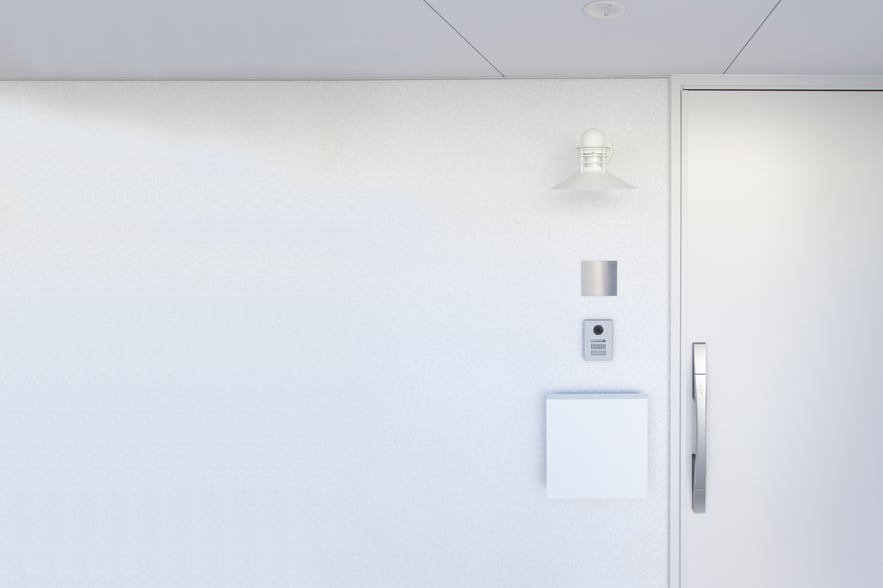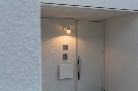 北欧の灯りがともる白い家。