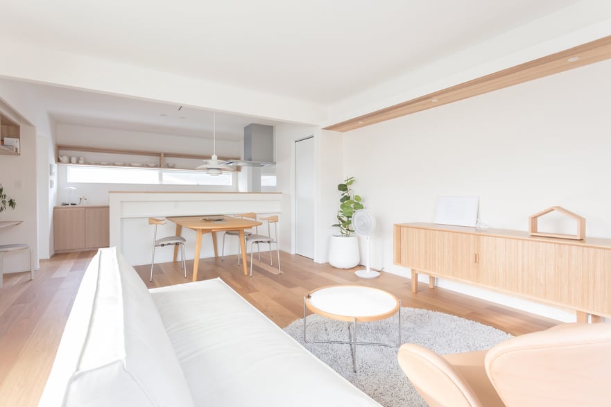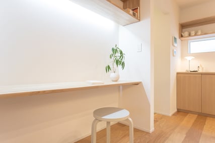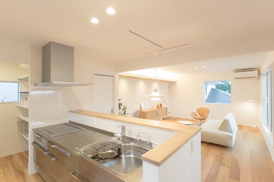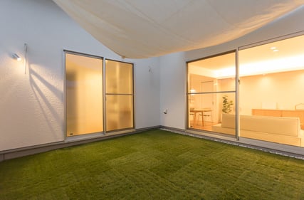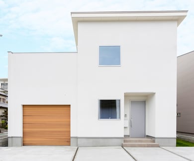シンプルながら重厚感を纏う木目が美しいレッドシダーのシャッターガレージ。2階リビングから繋がる10帖を超える“Sky Deck Balcony”は、外部からの視線を気にせず、住宅地であることを忘れてしまうほどの開放感をもたらします。年を重ねるにつれ深みを感じさせる外観と穏やかな暮らしがあるハコイエです。