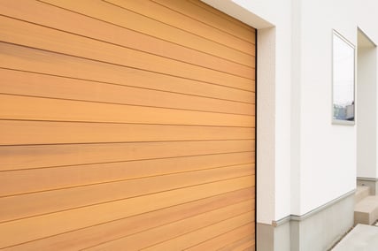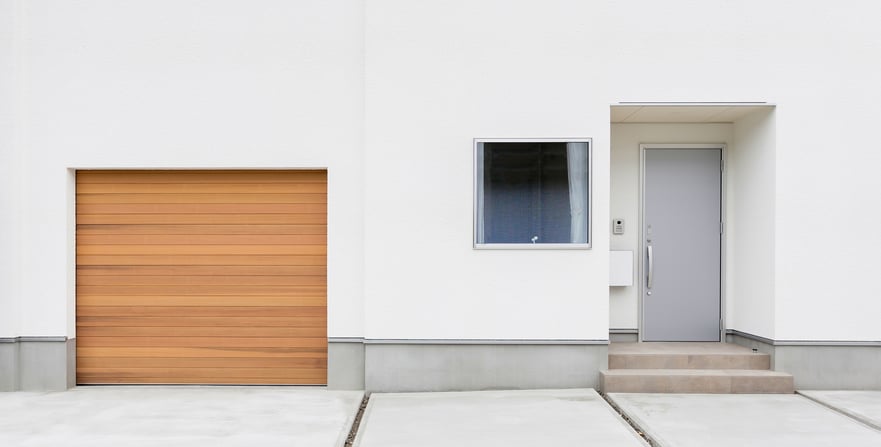 House with red cedar garage door