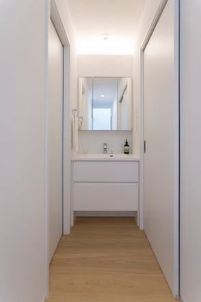 壁に溶け込むコーディネイトされた洗面台
