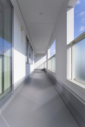 青空と緑に調和するシンプルなハコイエ