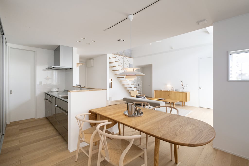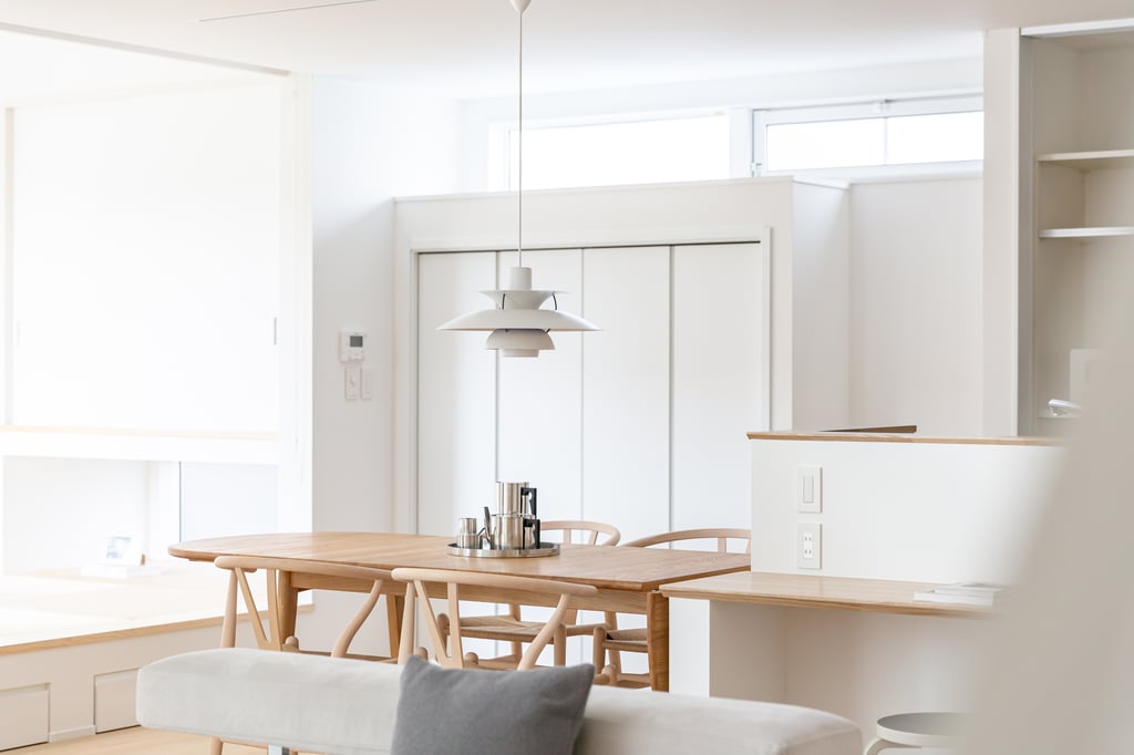 北欧家具でコーディネートし、大収納を備えた大きな平屋。ドックランを眺めながらくつろげる和室もある、二世帯住宅のハコイエ。