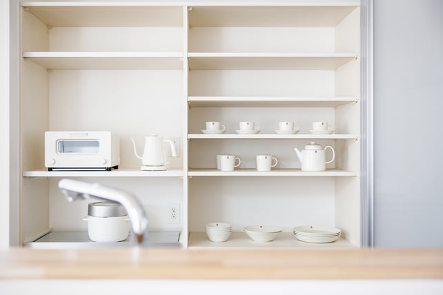 置くものに合わせて高さを変える。ライフスタイルの変化に順応する可変性のある収納。