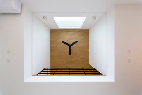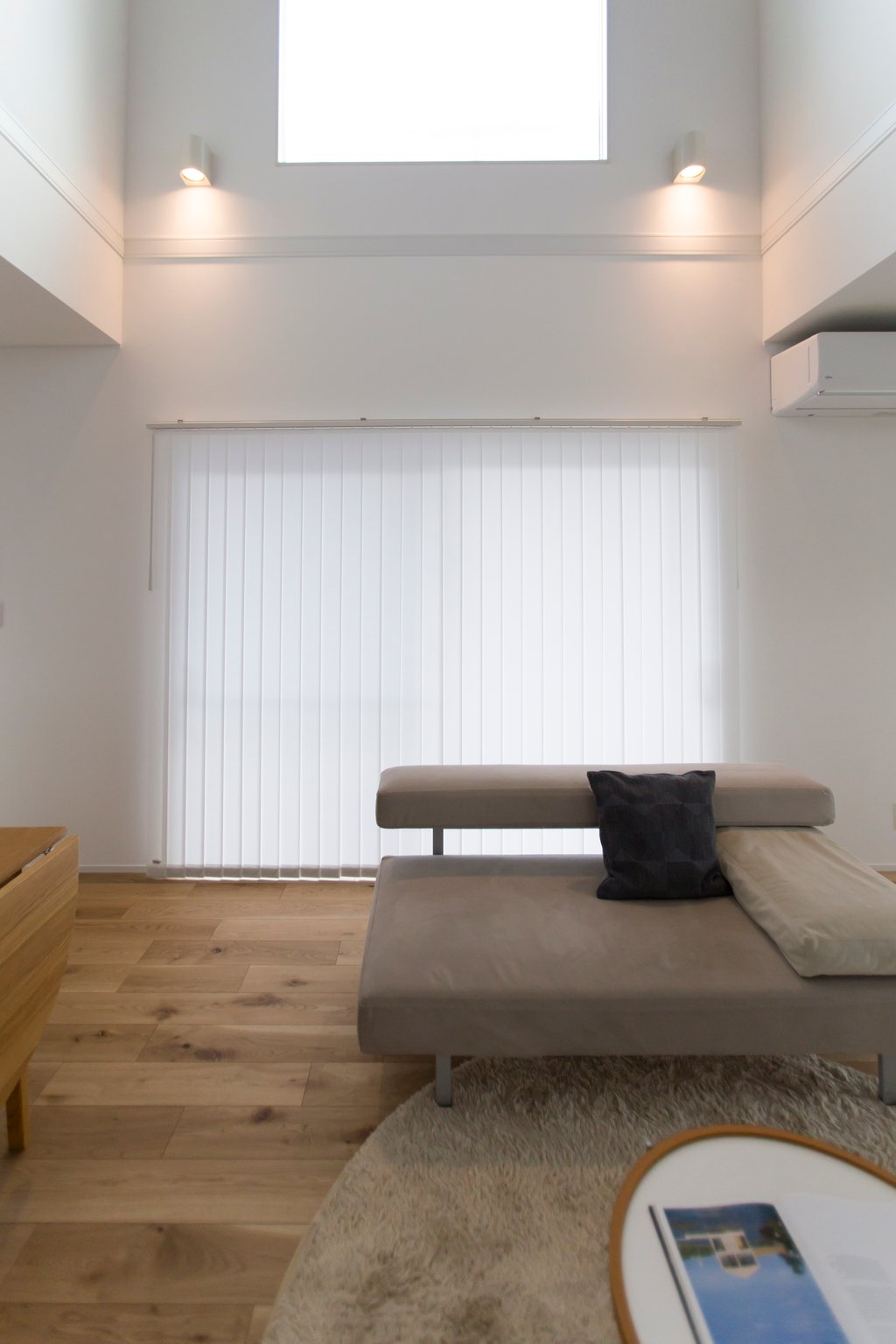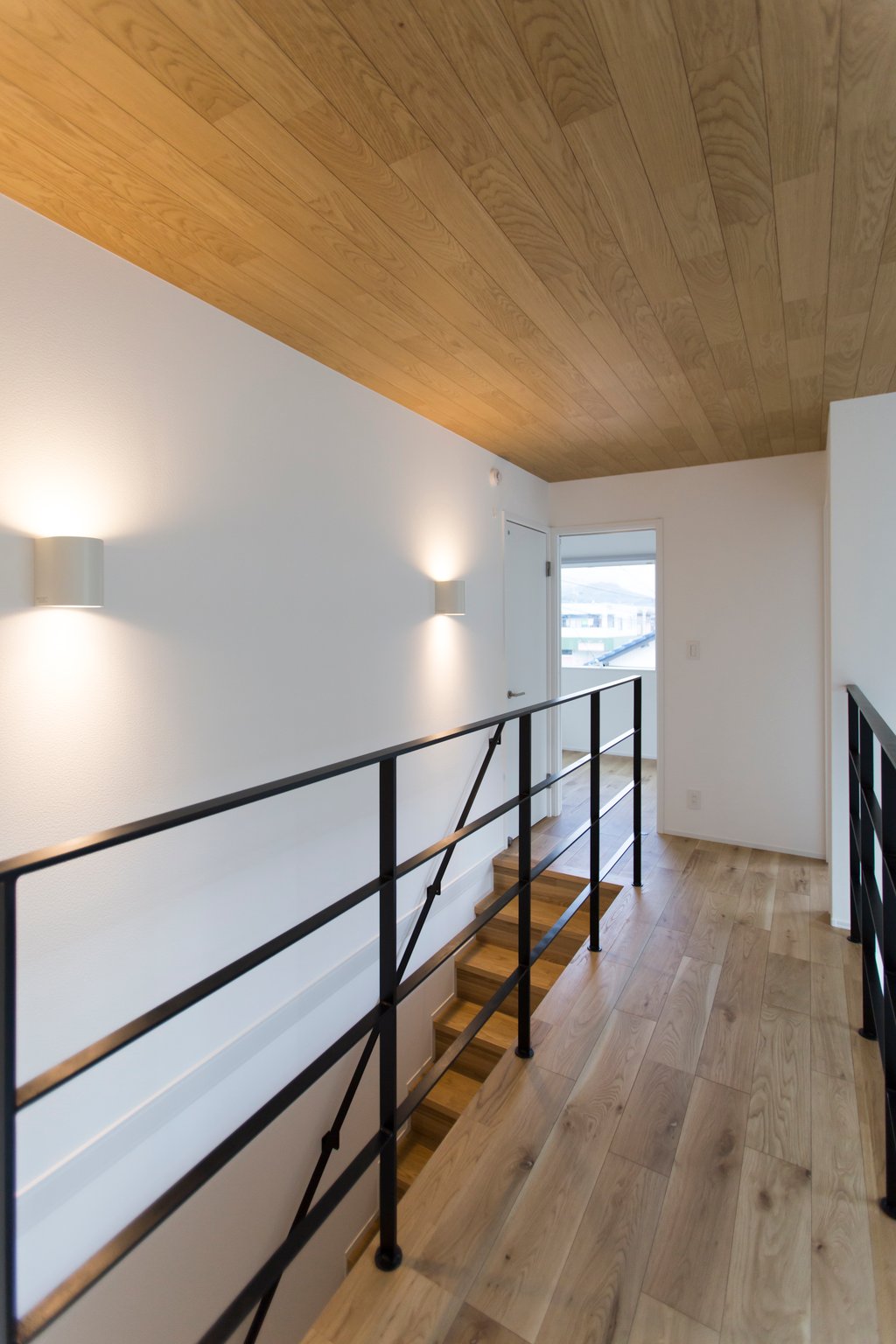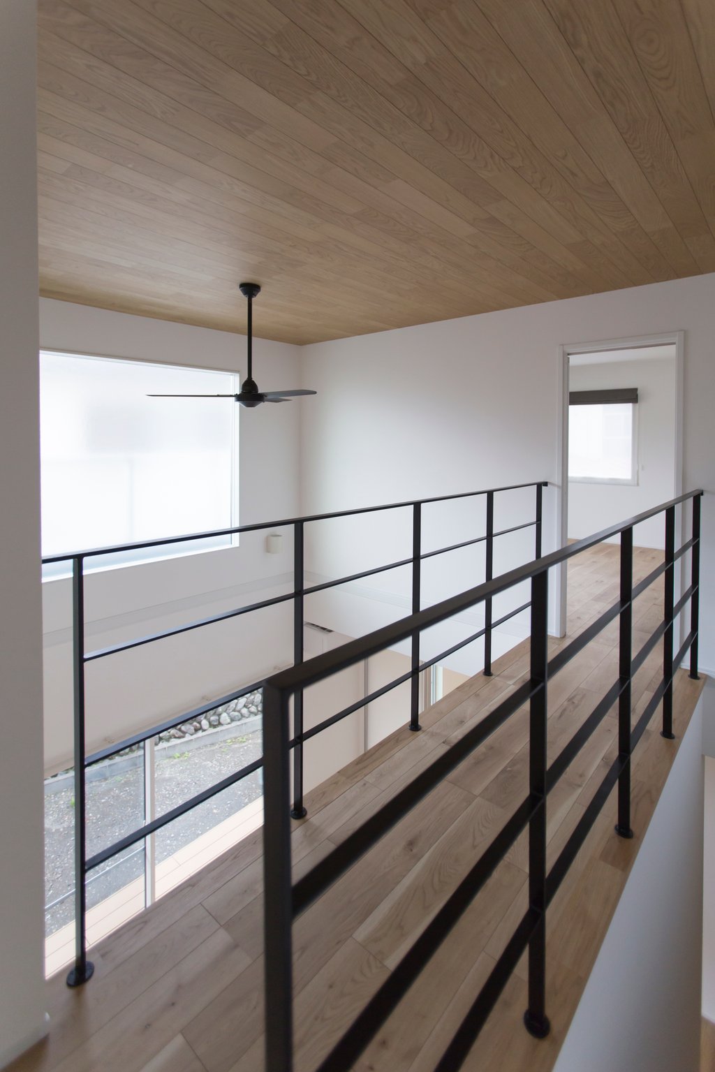 床材と合わせた木張りの天井に