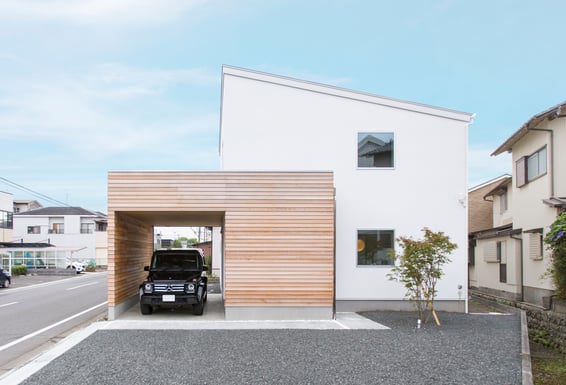 時が経つにつれシルバーグレーに。風化の味わいを愉しむ木と共存する暮らし。木のガレージがあるハコイエが誕生しました。