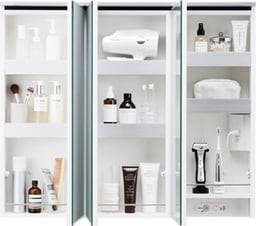 デッキやゲーム機はTV台収納に、DVDやCD、ゲームソフトやオーディオ関係の備品、ルーターやWi-Fiは、横の大きな物入れタイプ収納へ。また、家族で日常良く使う薬箱や文房具などを入れておくのも便利。